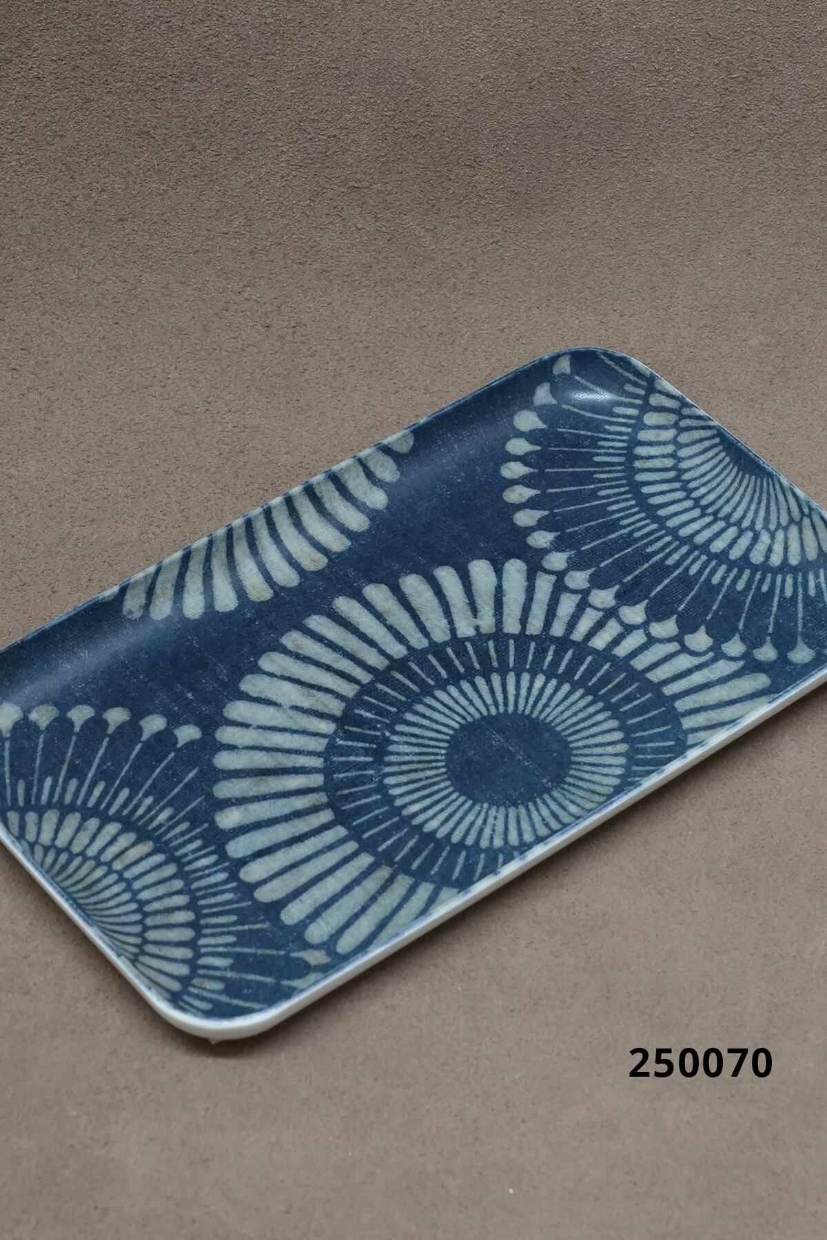 A tray with antique Japanese indigo-dyed fabric embedded.