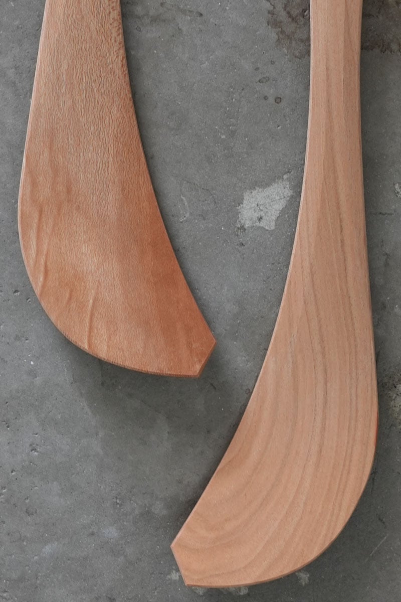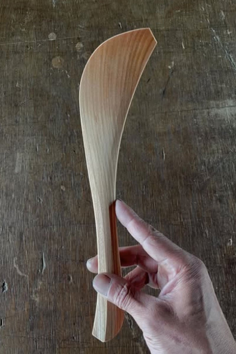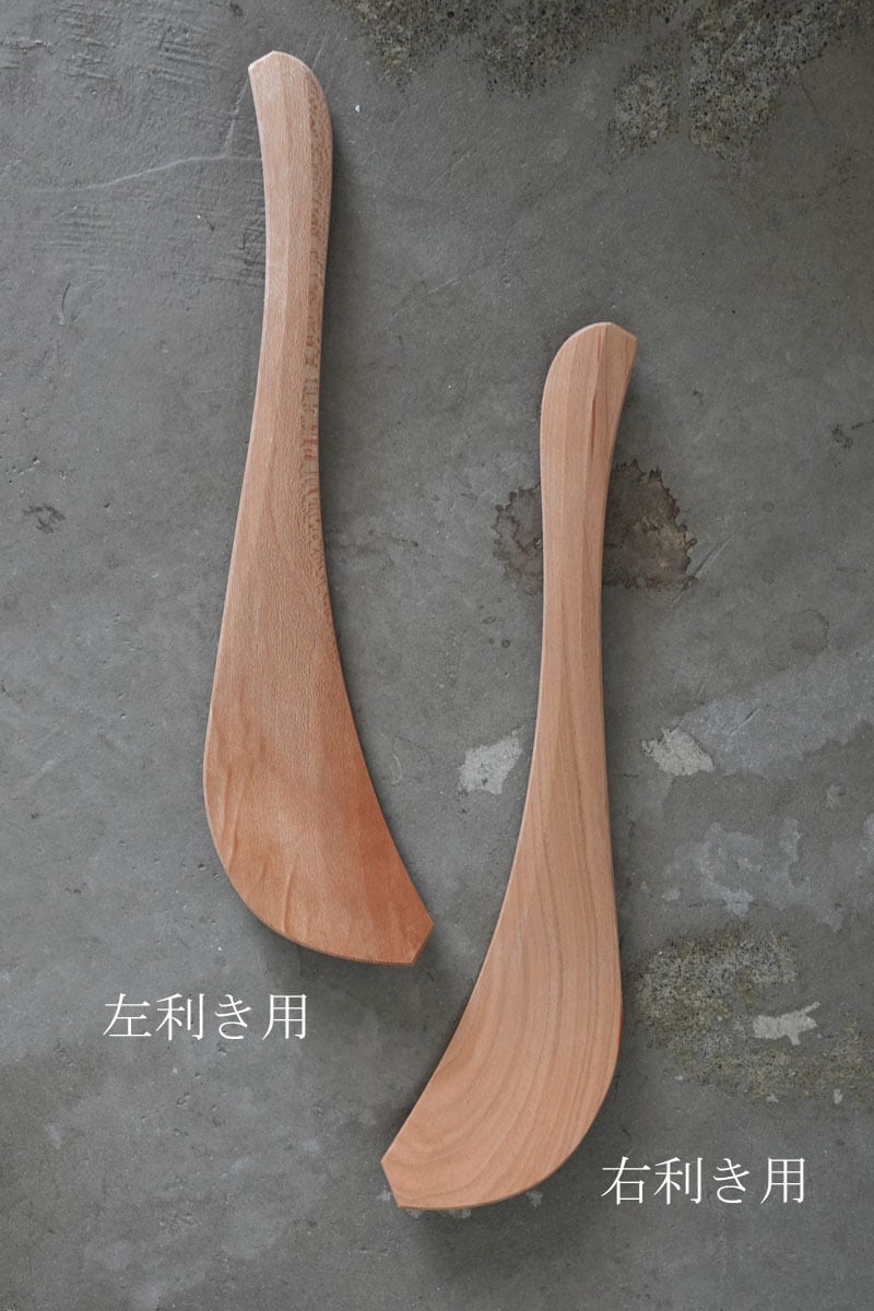 国産の山桜を一本ずつ削り出し、程よいしなりと手に吸いつくような持ち心地を生むために、角度や厚みが細かく調整されています。
