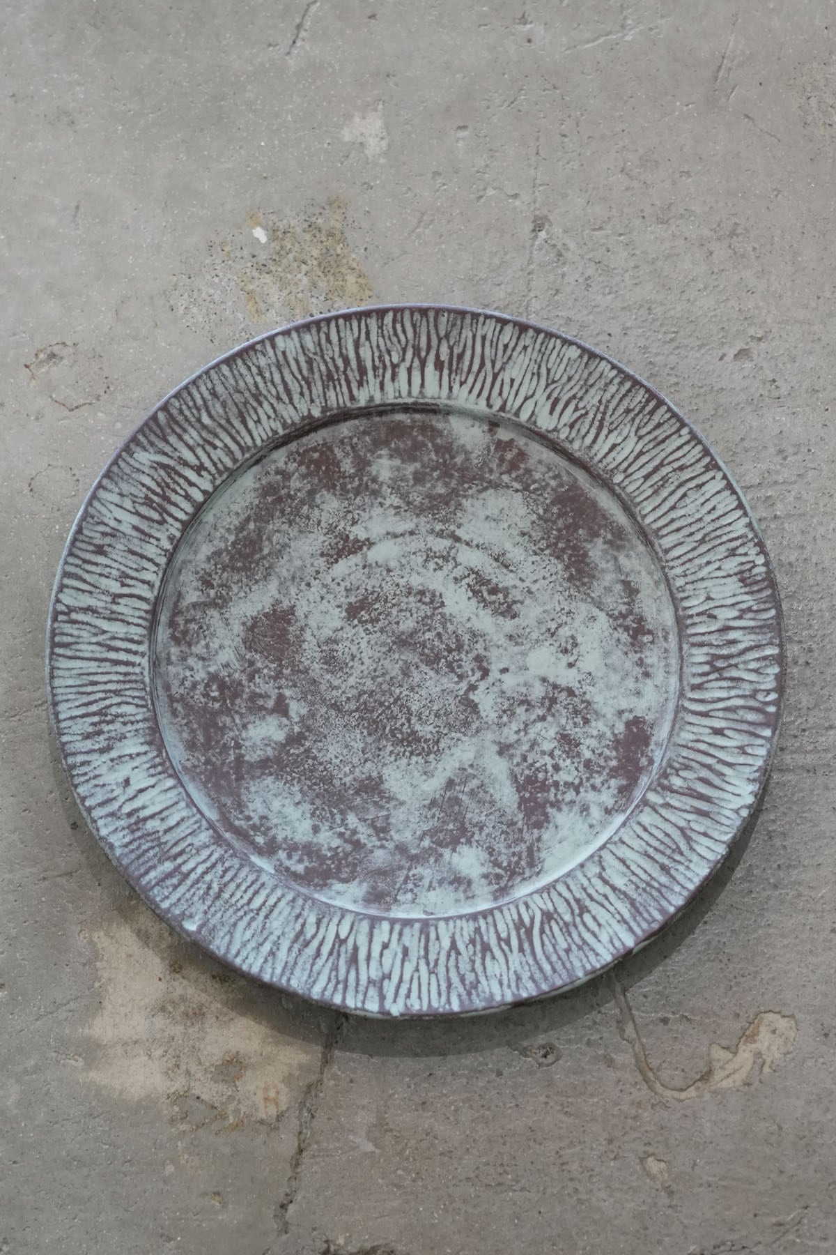 岡崎 慧佑 7寸リム皿線紋(茶緑)25.12-06